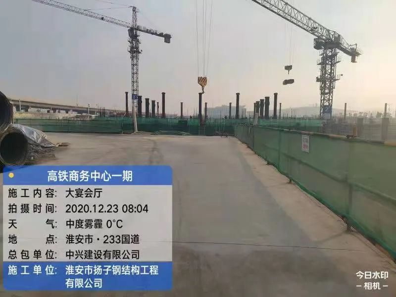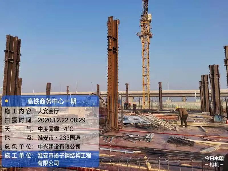 2021年12月31日,由淮安市揚(yáng)子鋼結(jié)構(gòu)工程有限公司(以下簡稱“揚(yáng)子鋼構(gòu)”)承建鋼結(jié)構(gòu)工程項(xiàng)目的淮安市高鐵新城商務(wù)區(qū)高鐵商務(wù)中心一期工程(高鐵金陵酒店)封頂大吉!高鐵商務(wù)中心項(xiàng)目距離高鐵淮安東站約400米,步行3分鐘即可到達(dá)。一期工程(高鐵金陵酒店)是區(qū)內(nèi)首家高星級酒店、首家超高層鋼結(jié)構(gòu)(110米大樓)核心筒結(jié)構(gòu)工程。揚(yáng)子鋼構(gòu)主要負(fù)責(zé)該工程地下2層及地上25層鋼結(jié)構(gòu)核心筒的制作與安裝!