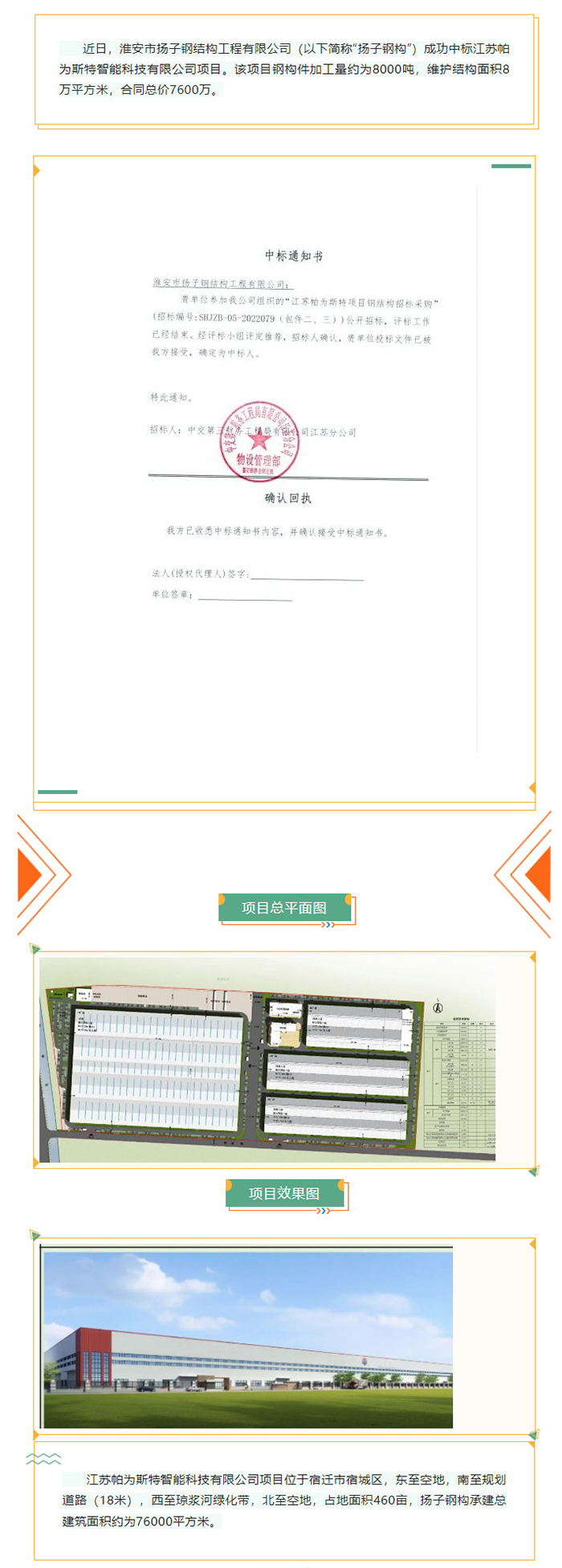 熱烈慶祝??!! 揚(yáng)子鋼構(gòu)中標(biāo)江蘇帕為斯特智能科技有限公司項(xiàng)目