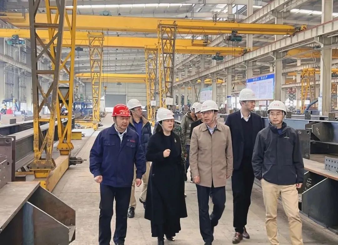 揚(yáng)子鋼構(gòu)領(lǐng)導(dǎo)陪同程校長一行參觀了江蘇天佑裝配建筑科技有限公司生產(chǎn)車間,介紹了公司的產(chǎn)品設(shè)備、生產(chǎn)工藝、在建項目等情況。