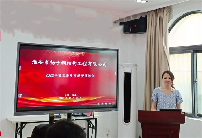 近日,淮安市揚子鋼結(jié)構(gòu)工程有限公司(以下簡稱“揚子鋼構(gòu)”)圓滿舉辦了由商務(wù)部、市場運營部及各區(qū)縣辦事處市場營銷人員參加的培訓(xùn)會議,董事長余秀萍、總經(jīng)理王旺、營銷副總祁俊龍等領(lǐng)導(dǎo)出席會議。