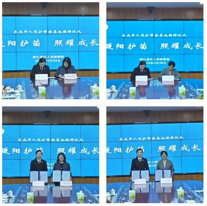 會(huì)上,清江浦區(qū)人民檢察院臧雪青檢察長(zhǎng)與江蘇揚(yáng)子鋼結(jié)構(gòu)工程有限公司余秀萍董事長(zhǎng)、清江浦區(qū)絲語未成年人司法社會(huì)服務(wù)中心共同簽署了《未成年人觀護(hù)幫教基地合作協(xié)議》,并舉行了未成年人觀護(hù)幫教基地揭牌儀式。